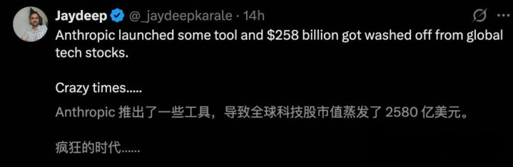 Anthropic这只AI蝴蝶扇了一下翅膀,全球股市狂风暴雨、令人胆寒──