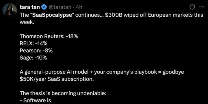 现如今,整个华尔街陷入恐慌,宣称「SaaS末日」(SaaSpocalypse)真正来临。
