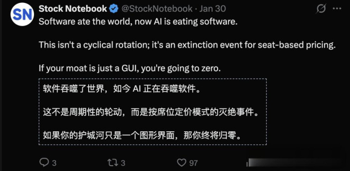 因此,全球软件行业正经历一场极其惨烈的「信仰地震」!