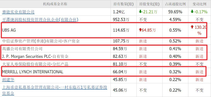 睿能科技,做工业自动化起家,现在切入汽车级MCU和电源管理芯片分销,瑞银直接加仓64万股,成了第三大股东;